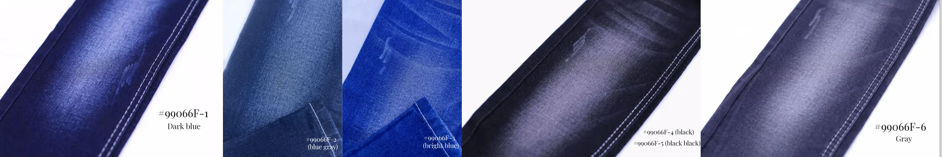 This denim collection has 6 colors of the same quality, including dark blue, blue-grey, black, black black, grey, and bright blue.